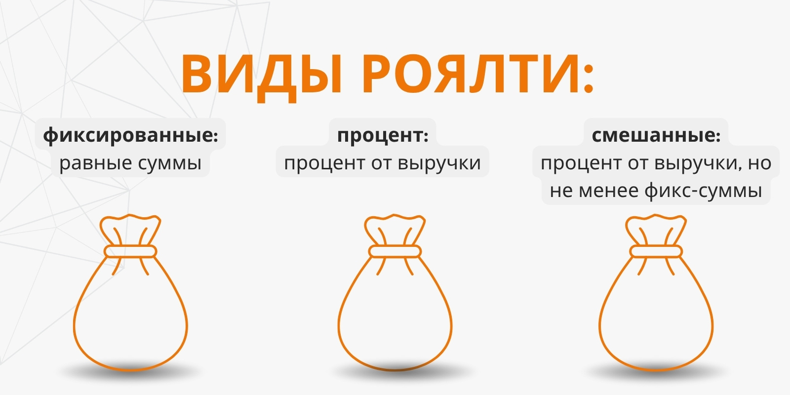- комбинированные роялти (% от выручки, но не менее фиксированной суммы).