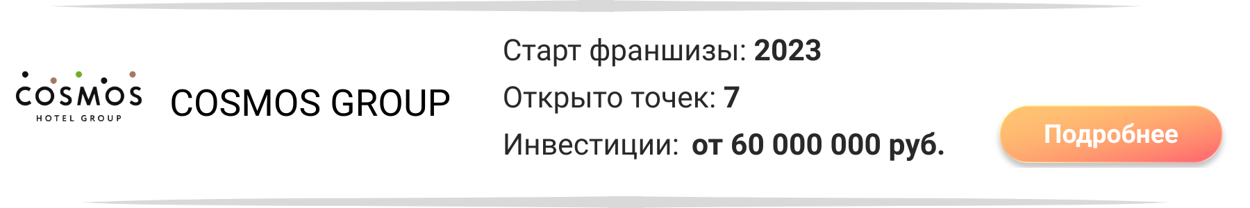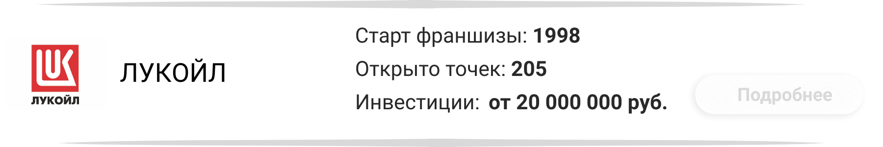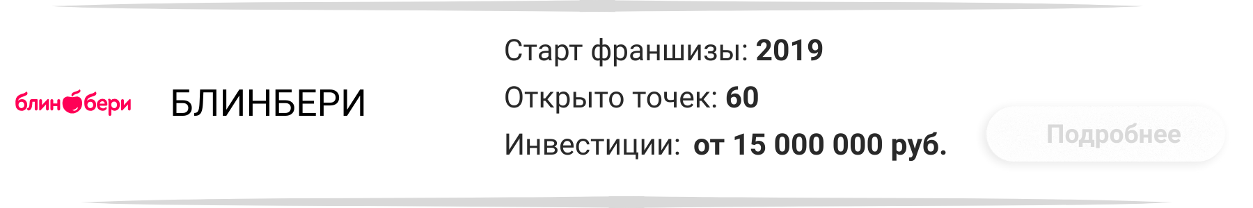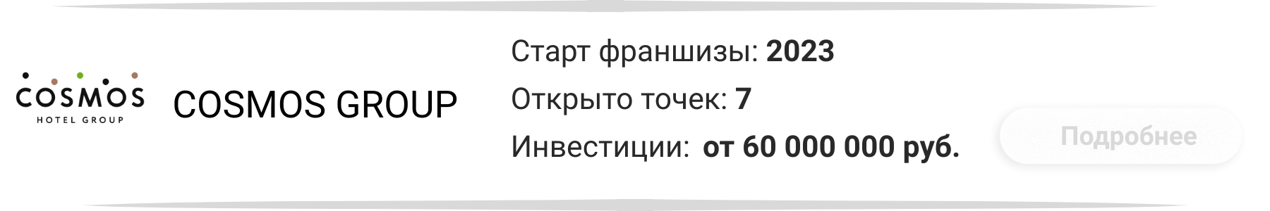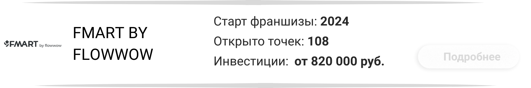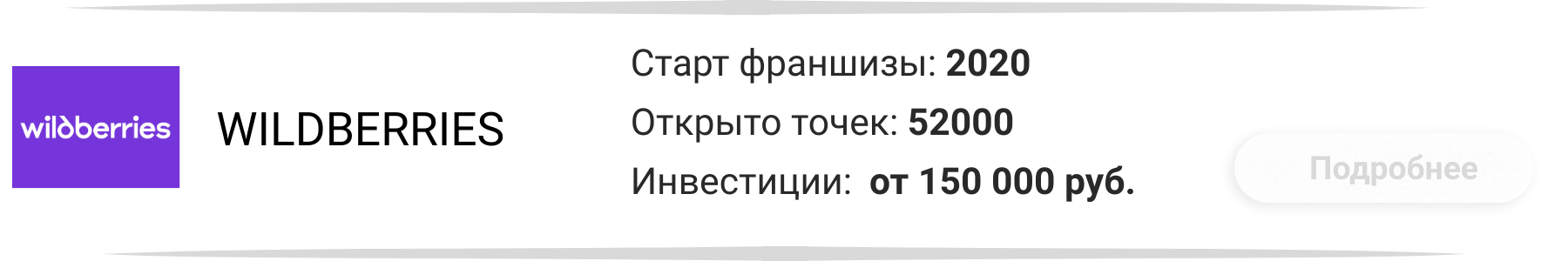 По франшизам можно увидеть развернутую информацию и получить подробности ее покупки при нажатии на карточку франшизы.