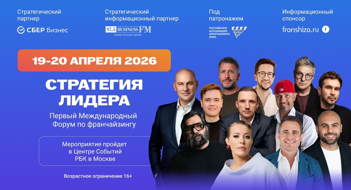 Первый Международный Форум по франчайзингу "Стратегия Лидера" пройдет 19–20 апреля 2026 года в Центре Событий РБК в Москве.