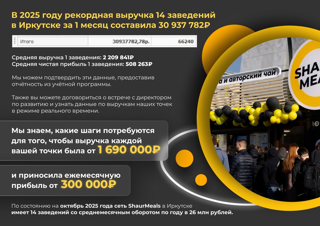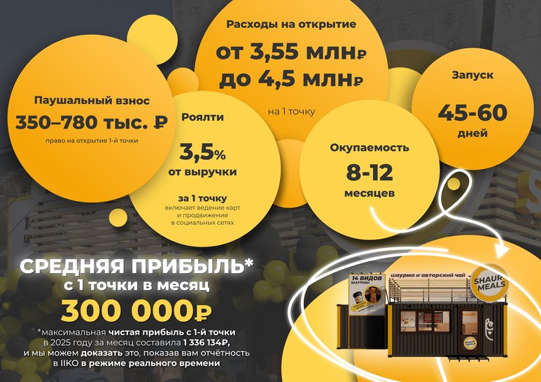 Стоимость без ShaurMeals – от 1,5 млн руб.