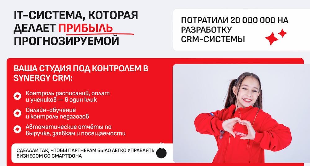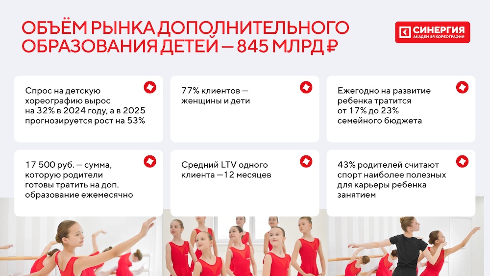 Школа танцев Синергия — это готовый прибыльный бизнес в сфере детского дополнительного образования с гарантией привлечения клиентов и поддержкой федерального уровня.