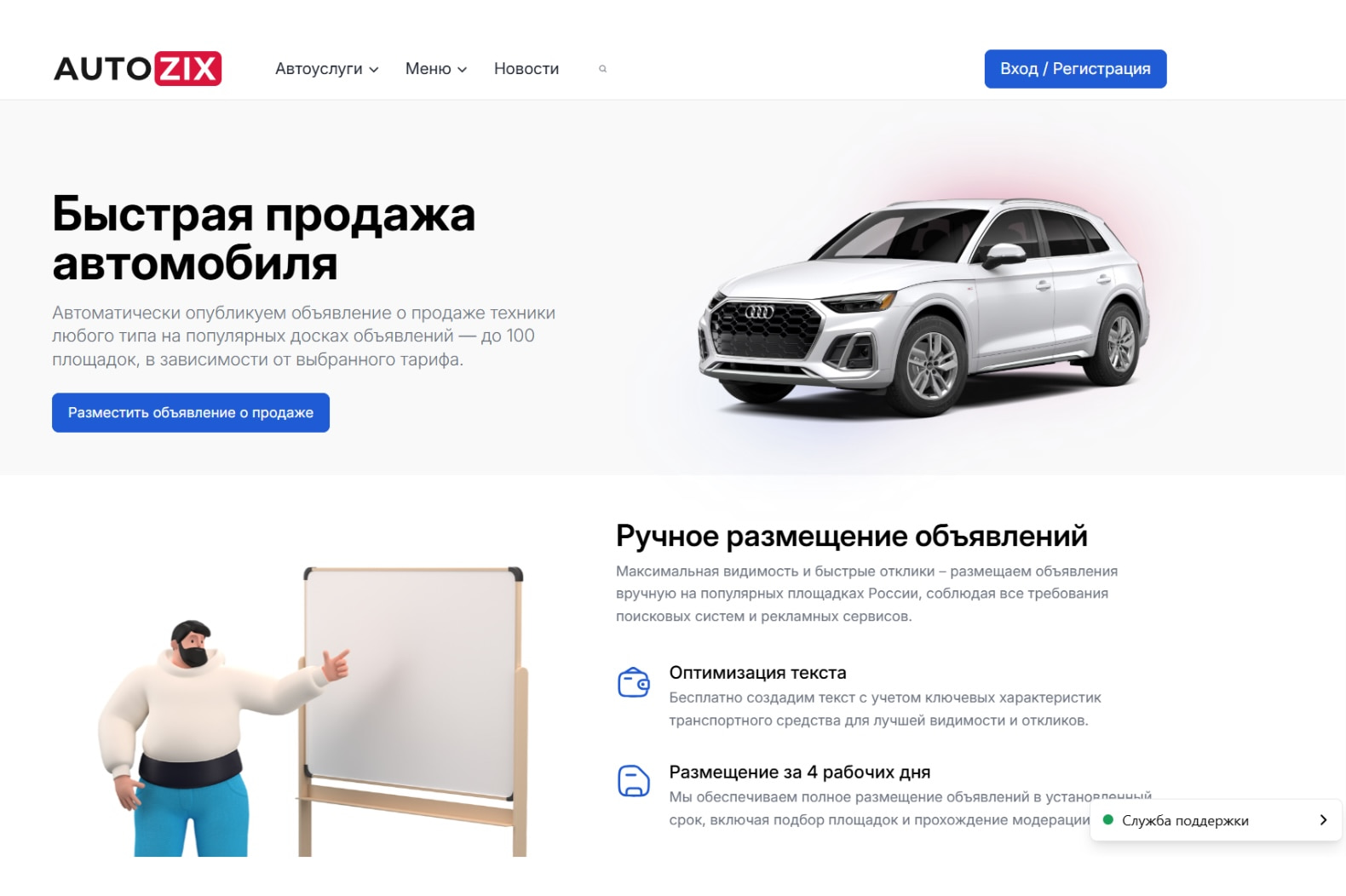 Вам передается готовый онлайн-маркетплейс автомобилей и автоуслуг Autozix.ru. Вы становитесь владельцем собственного цифрового бизнеса в нише B2C и B2B, работая как агрегатор и посредник, зарабатывая с прямых продаж маркетплейса, в том числе получая комиссионное вознаграждение с партнерской сети.