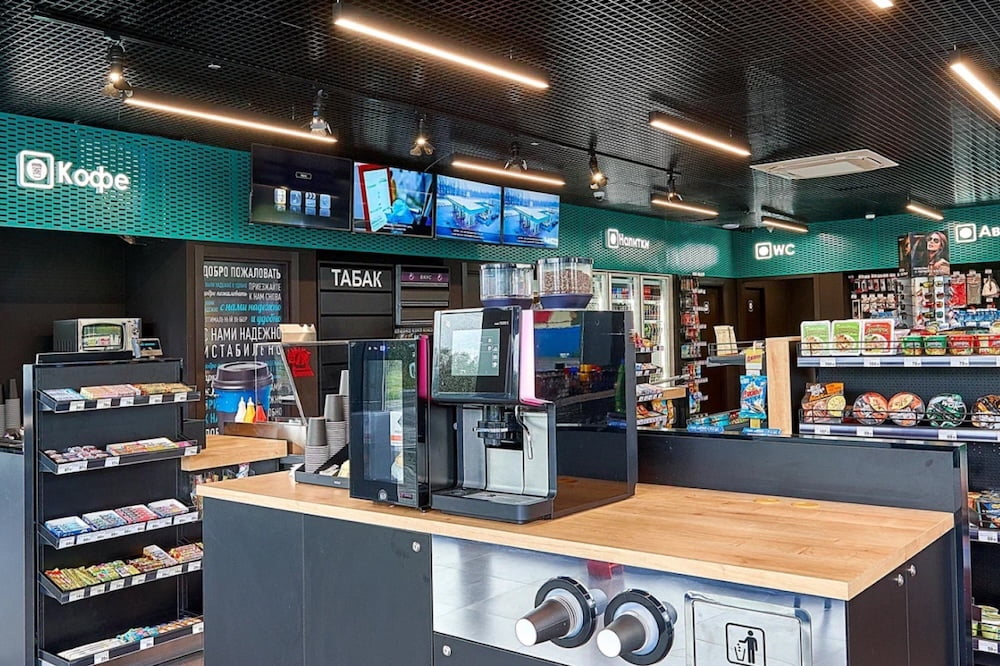 - Устройство торгового зала АЗС, общей площадью не менее 45 м2