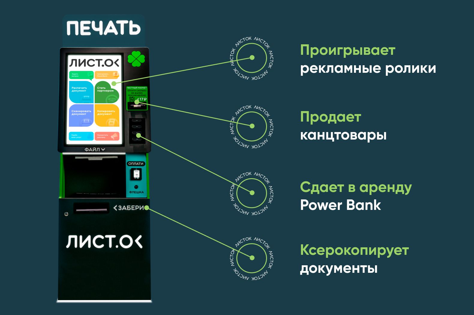 - Бизнес почти пассивный: достаточно тратить час в неделю на замену картриджа и добавление бумаги.