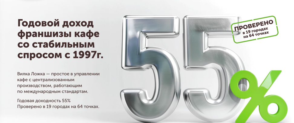 Бизнес-модель «Вилка Ложка» проверена временем, уже открыто 64 кафе и приносят прибыль по всей России.