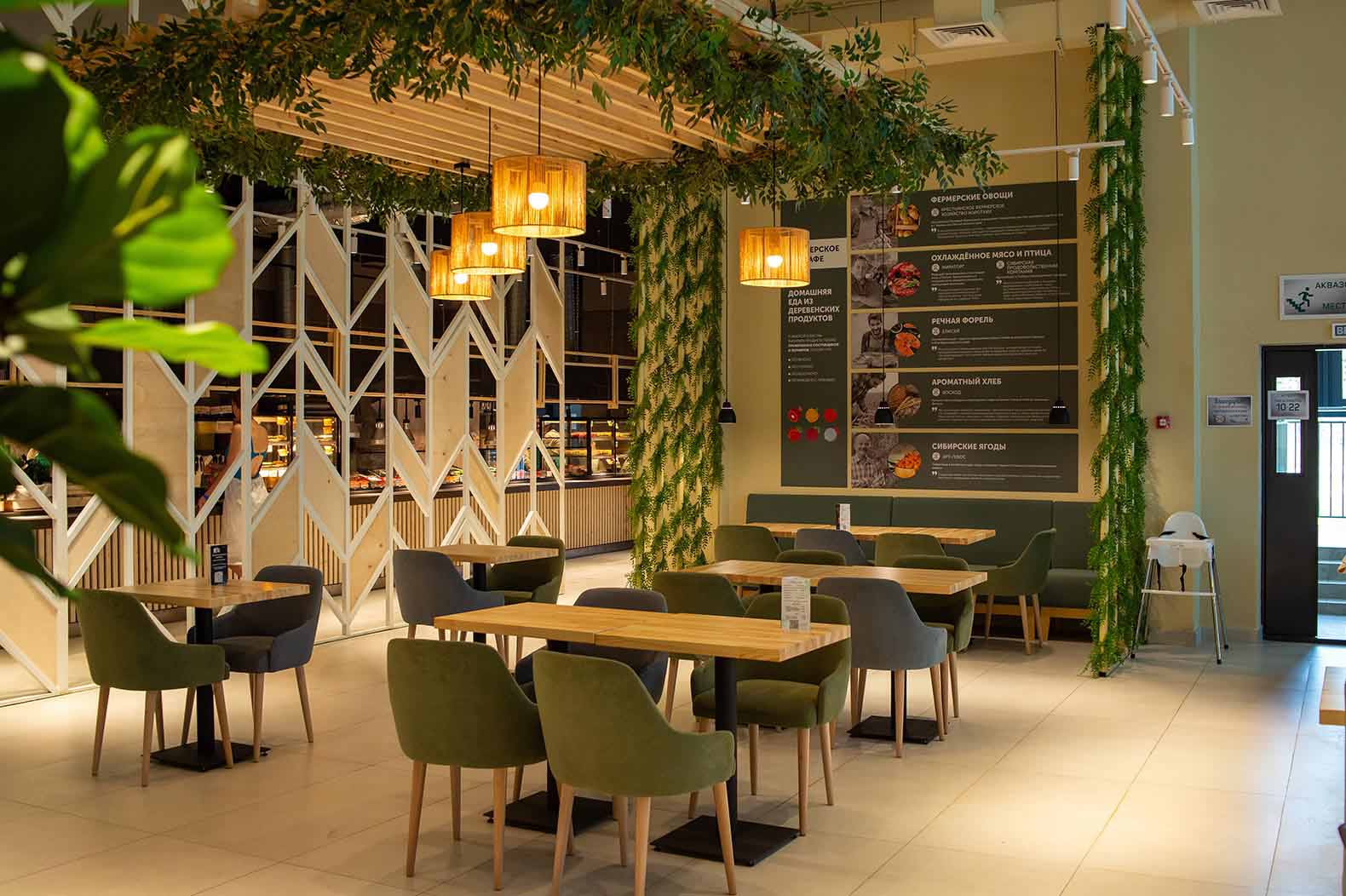 - Зона посадки: фирменное оформление, площадь от 50 м2, количество мест от 50