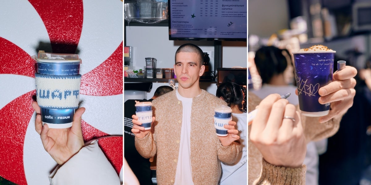 Напиток подаётся в брендированных стаканах с новым дизайном, разработанным к праздничному сезону в рамках коллаборации FEDUK x Cofix.