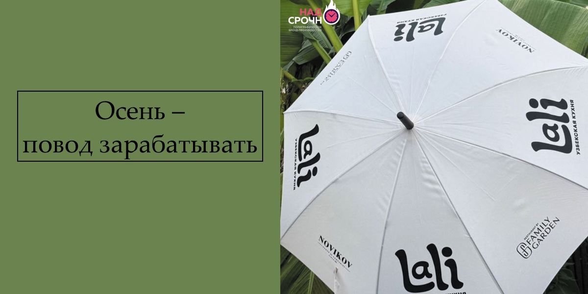 В то время как осень приносит дожди и хмурое настроение, франчайзи сети "НадоСрочно" находят новые возможности для заработка. Печать на зонтах стала настоящим хитом, приносящим значительную прибыль. Один из франчайзи смог заработать 38 000 рублей из которых 30 400 рублей чистой прибыли.