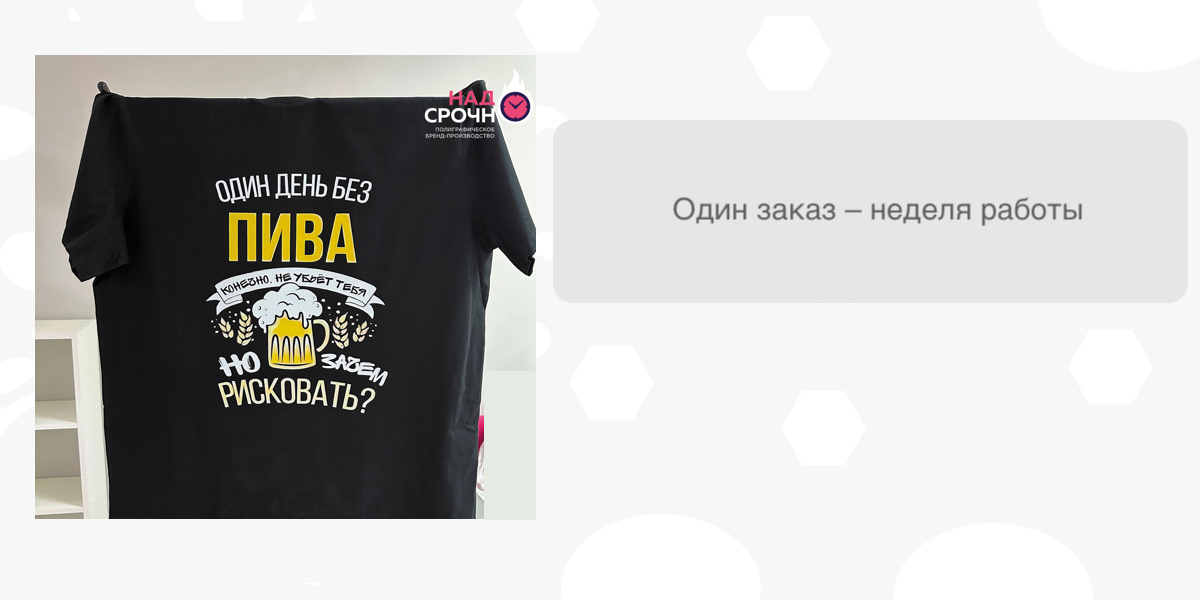 Франчайзи компании "НадоСрочно" успешно выполнил крупный заказ на 120 футболок, что позволило ему обеспечить занятость на всю неделю и значительно увеличить доход. Брендирование изделий принесло ему 134 200 рублей, из которых чистая прибыль составила 107 360 рублей.