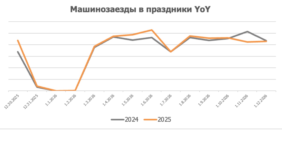 Аналитическая служба международной сети автосервисов FIT SERVICE провела исследование поведения автолюбителей в период новогодних каникул 2026 года, охватывая период с 1 по 12 января. Общее число визитов автомобилей осталось примерно на том же уровне, что и в предыдущем году. Однако структура спроса претерпела заметные изменения: появились отчетливо выраженные дни повышенного спроса, а также ускорилось восстановление клиентского потока и увеличился средний чек.